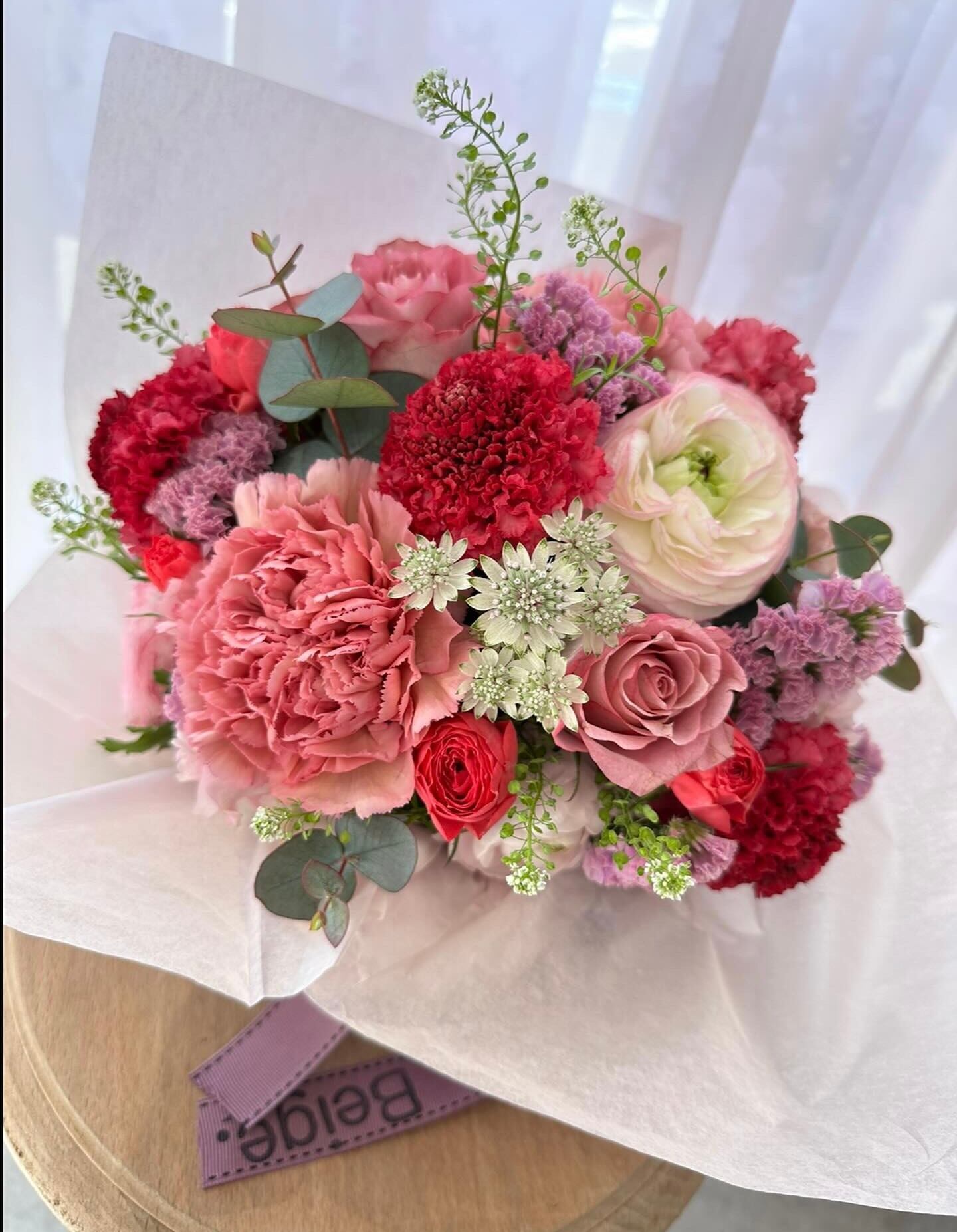 カーネーションを使った、パリスタイルのフラワーアレンジメントです!